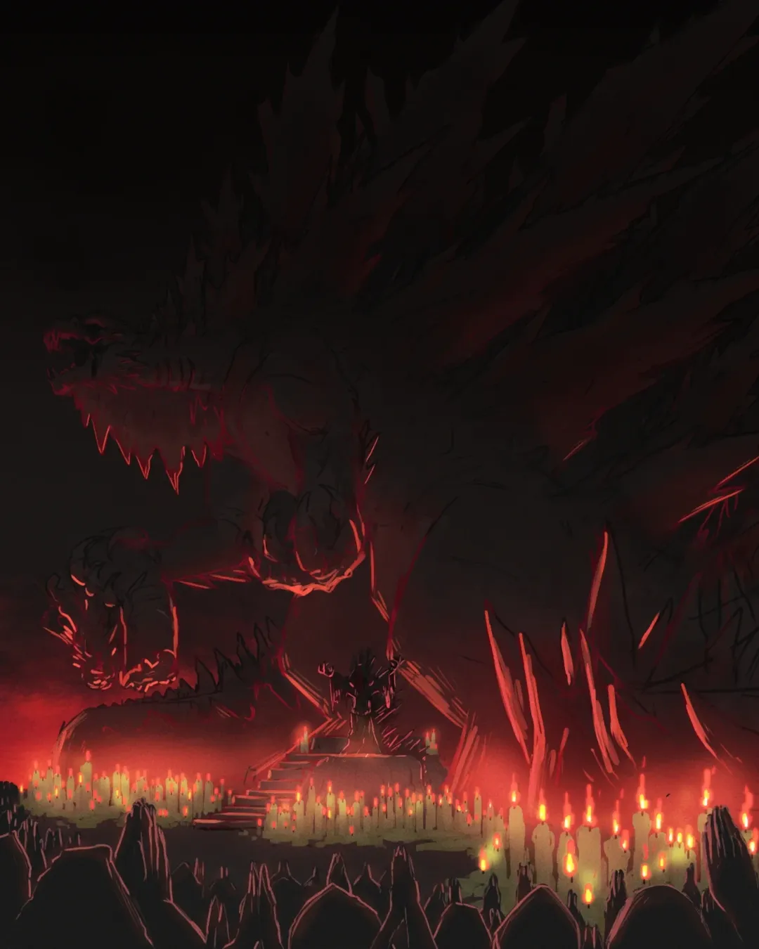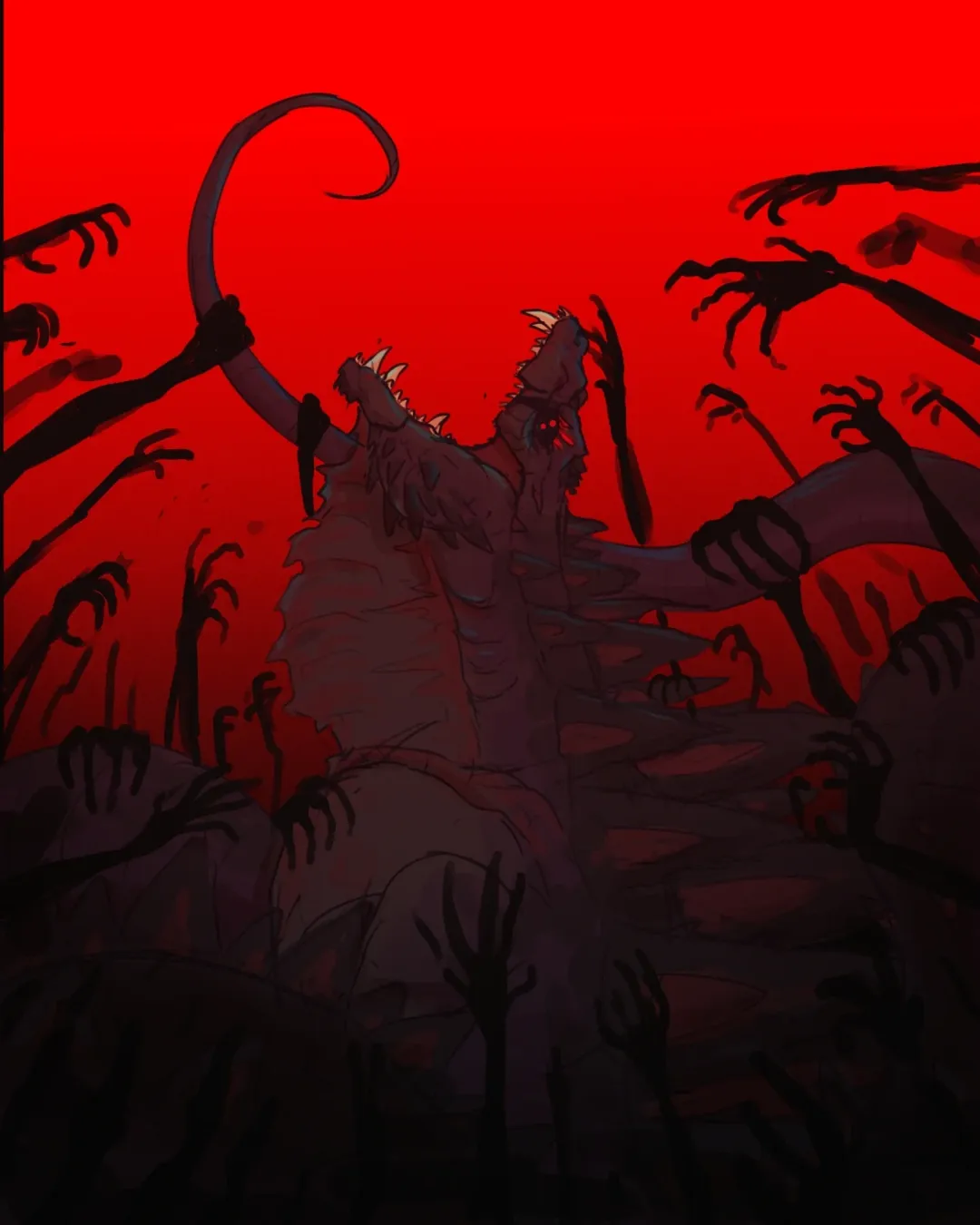 He has been drawing since kindergarten, but the foundations of his aesthetic were laid long before he understood it as one. Dinosaur documentaries, kaiju films airing late on television, fossil studies, monster media, and horror clips found through unrestricted internet access as a teenager. Dragons and dinosaurs filled his early notebooks. What began as creature design slowly evolved into an artistic style unique to him. The horror was never about gore for him but instead about the tension between fear and fascination.