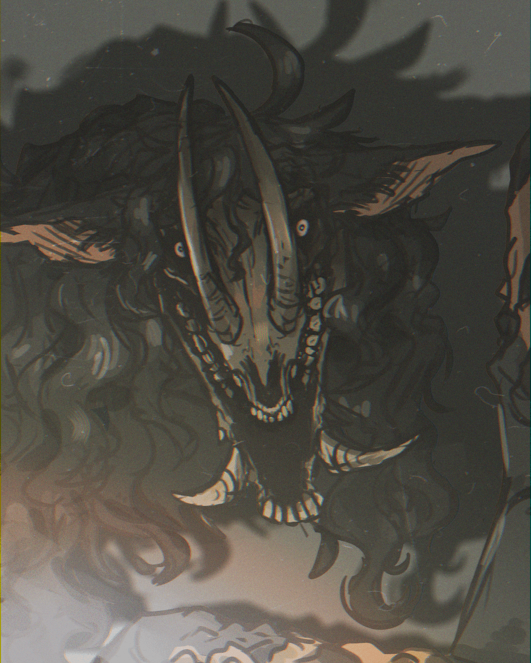 Haekal does not shy away from the word disturbing. In fact, he builds inside it. His work is in deep reds, heavy blacks, and stark whites, populated by skeletal, horned creatures. Where some people see something unsettling, he sees possibility.