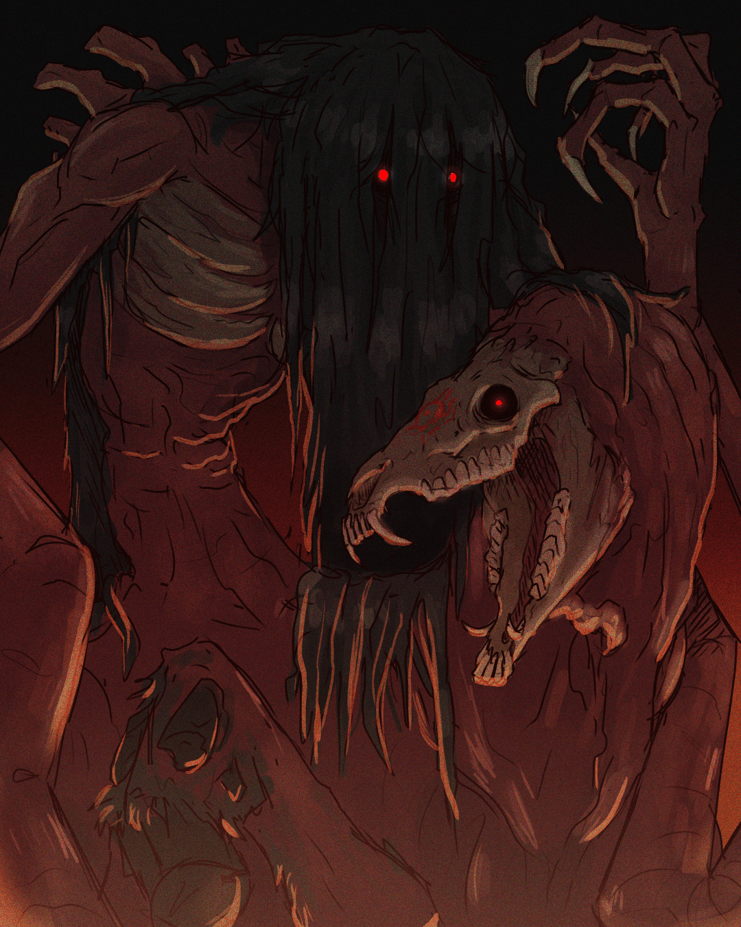 And lastly my newest artstyle. This is the best it has ever looked because I'm not obsessing on every tiny detail but focusing on the bigger picture, I'm finally comfortable & enjoying the messy look, and capitalizing on the horror aspects.